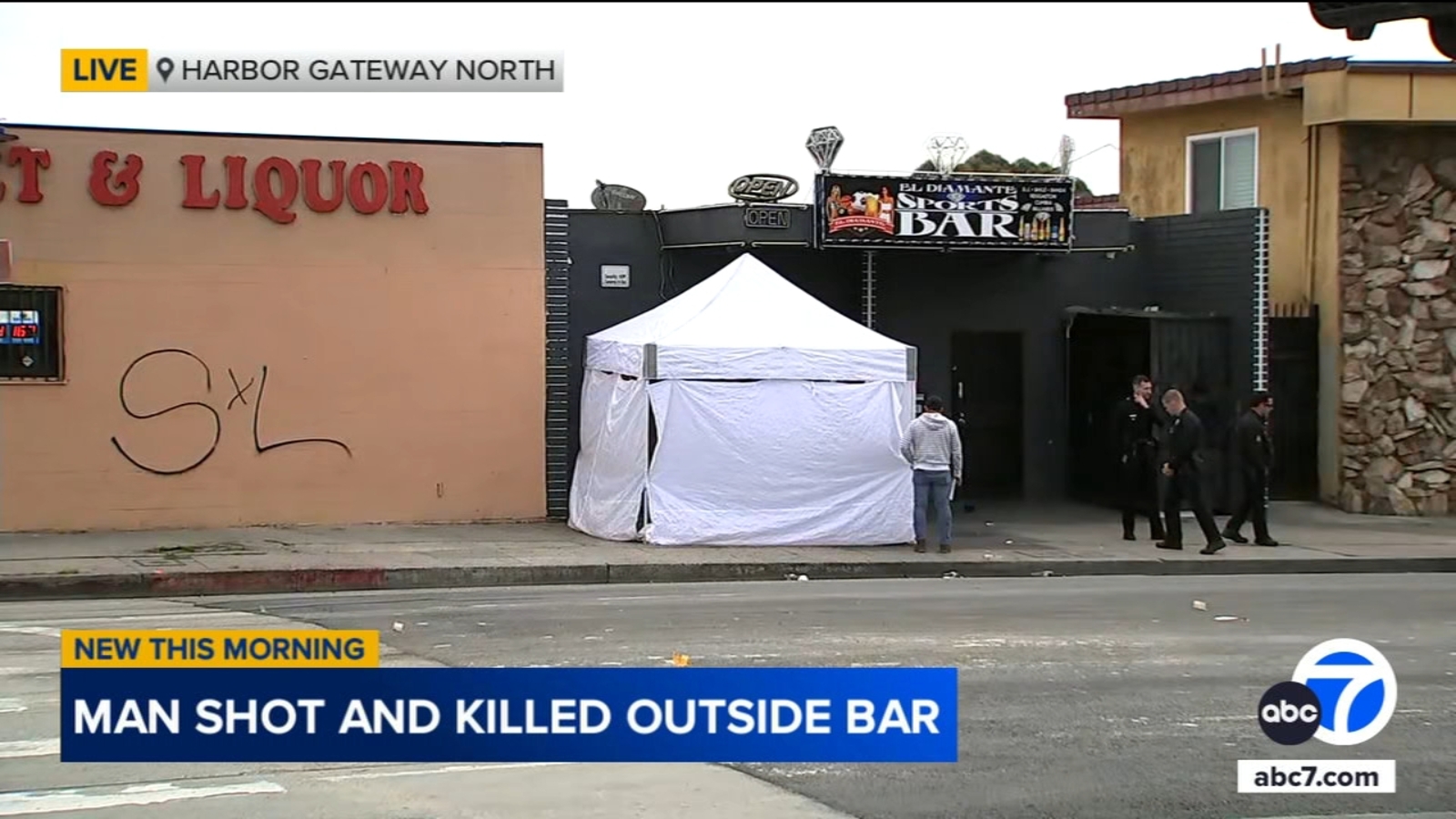 LOS ANGELES (KABC) – A man was shot and killed outside El Diamante Sports Bar on South Figueroa Street in Los Angeles early Saturday morning, according to the Los Angeles Police Department.