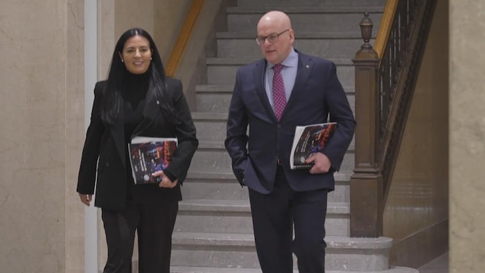 La mairesse de Montréal, Soraya Martinez Ferrada, et le président du comité exécutif, Claude Pinard, lors de la présentation de la présentation de leur premier budget depuis l’élection de novembre 2025.