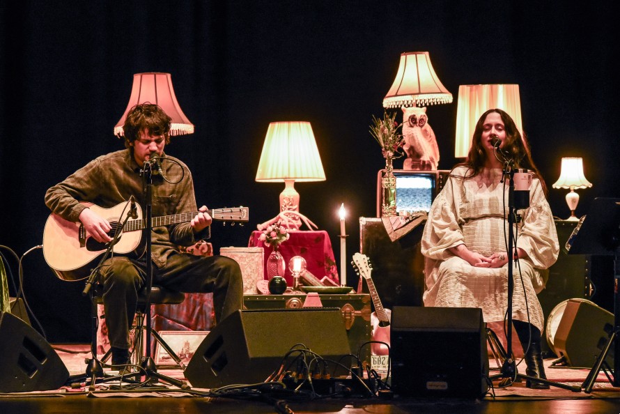 The evening was a masterclass in understated artistry. The duo, seated on chairs atop Persian rugs, traded songs from their respective catalogs, interspersed with covers and tracks from Crutchfield’s recent collaboration with her sister Allison, the Snocaps album. The stage setup, complete with a stuffed dog and a rotating cast of pre-tuned instruments, evoked the comfort of a late-night jam session rather than a traditional rock show. It was a performance that invited the audience into their world, where the boundaries between performer and listener blurred, and the music felt like a conversation.